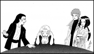 Tsume regarda Ryuga et Yukina avec une stupeur indescriptible dans le regard. Tsunade se prit le front en secouant sa tête comme pour conjurer une situation inextricable. Quant aux deux autres membres de la famille Hyûga, ils regardaient Hiashi avec craintes et étonnements. Ryuga les bras croisés fixaient avec haine Hiashi.