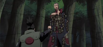Tandis qu'il vainc Kakuzu à l'aide du Rasenshuriken, Shikamaru abat Hidan par l'intelligence incomparable de ses stratégies.
